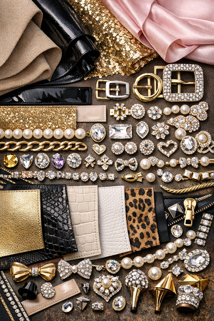 AI BEI SHI develops footwear and apparel using the latest materials, fabrics, and trims available on the market. Through established sourcing channels, we work with a wide selection of fabrics, leathers, satin, PU with animal-inspired finishes, hardware, decorative buckles, chains, and embellishments, supporting trend-driven and flexible development.